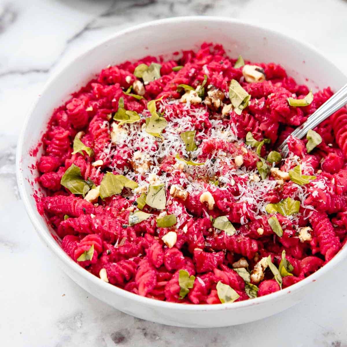 Cook the pasta according to the package instructions. Once it’s ready, toss it with the freshly made beet sauce. If the sauce feels too thick after tossing, you can add more pasta water to loosen it up to your preferred texture.